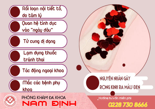 Hiện tượng rong kinh ra máu đen là do máu kinh bị ứ đọng nhiều ngày trong tử cung rồi mới thoát được ra ngoài. Theo các chuyên gia y tế, rong kinh ra máu đen là dấu hiệu của các bệnh phụ khoa nguy hiểm mà các chị em cần chủ động tìm đến các cơ sở y tế chuyên môn để thăm khám và kịp thời điều trị, nhằm tránh ảnh hưởng đến sức khỏe cũng như khả năng sinh sản của chị em